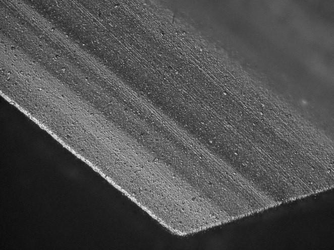 Figure 3: Part of an endmill: rake face and the primary cutting edge on the left hand side of each image.