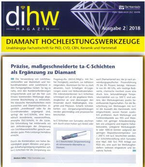 dihw-Magazin berichtet in Ausgabe 2/2018 über Surcoatec's ta-C-Schichten