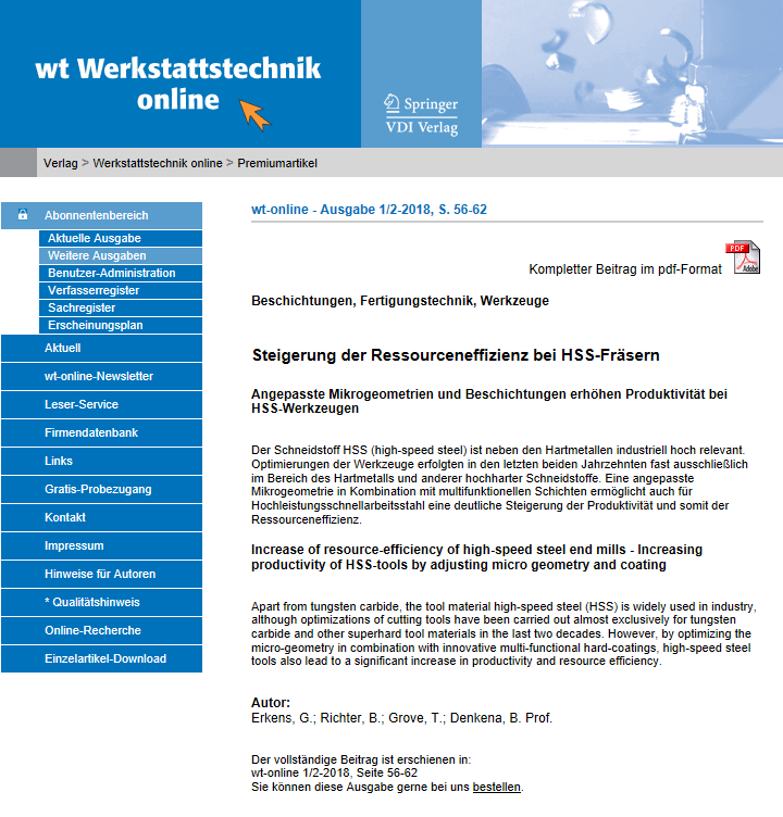 Der Schneidstoff HSS ist neben den Hartmetallen industriell hoch relevant. Optimierungen der Werkzeuge erfolgten in den letzten beiden Jahrzehnten jedoch fast ausschließlich im Bereich des Hartmetalls und anderer hochharter Schneidstoffe. Die Anwendung einer angepassten Mikrogeometrie in Kombination mit multifunktionellen Schichten ermöglicht auch für Hochleistungsschnellarbeitsstahl eine deutliche Steigerung der Produktivität und somit der Ressourceneffizienz.