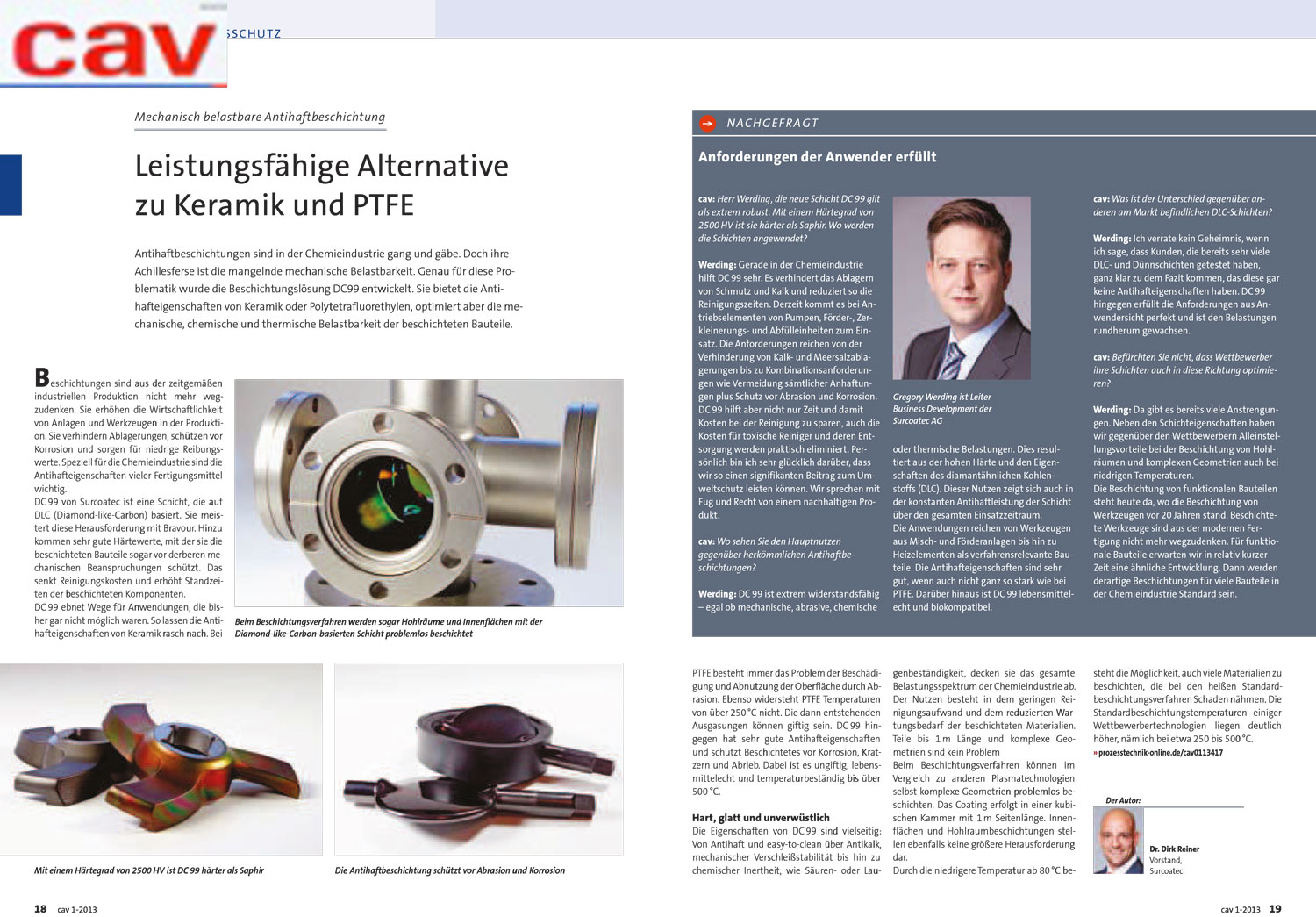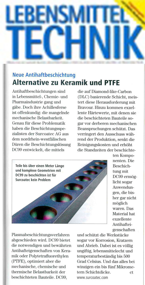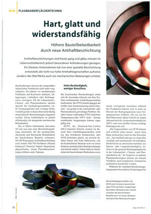 Die Forderung des Maschinenbaus nach multifunktionalen Oberflächen spielt den DLC-Beschichtungen in die Hand. Das zeigt die Entwicklung einer Antihaftbeschichtung für die Lebensmittel-, Chemie- und Pharmaindustrie. Je nach Modifizierung erhält sie weitere Eigenschaften. Die Substitution von Keramik- und PTFE-Schichten hat begonnen.